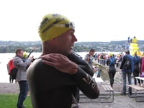 Die 1,9km Schwimmen im Zürichsee war für die beiden Triathleten schon die erste Herrausforderung, 16 Grad Wassertemperatur und Wellen verlangeten den beiden schon einiges ab.